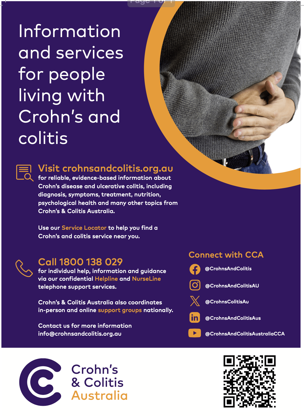 The 2024-2025 project is overseen by the Crohn’s & Colitis Australia Scientific, Medical and Quality of Care Advisory Committee.