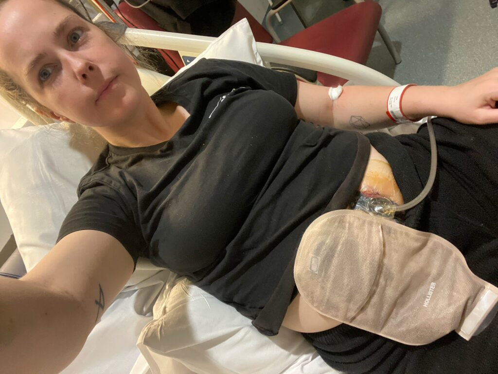 From 14-17 I experienced acute symptoms (extreme constipation, diarrhoea, weight loss and pain), and was eventually hospitalised for three months. in 2010, I underwent several unsuccessful treatments and surgeries, until I had my first ileocaecal resection at the age of 17 in the UK. A bowel obstruction in 2012 led to further open surgery, and in 2023, after having moved to Australia, I underwent another bowel resection to remove diseased bowel at the neo terminal ileum, as well as another stricture. Recovery was complicated and long winded, with multiple hospital admissions for peritonitis and wound dehiscence respectively, with the latter requiring a vac assisted dressing for many weeks.