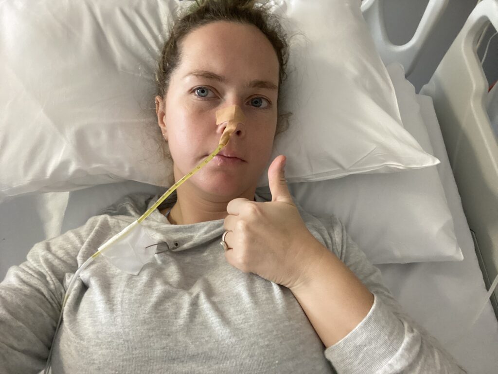 I underwent loop ileostomy surgery via laparotomy on the 15th of May. The operation was successful and I moved to the ward, where I began mobilising and attempting fluids within hours of surgery. Unfortunately, I quickly experienced a scary ileus, which required NG tube insertion to decompress the bowel. Although pain was well controlled, and my stoma (whom I have now affectionately named Sid), began working within a few days, I had substantial stoma output of close to three litres a day (the normal range for an ileostomy ideally being under one). I struggled to stay hydrated and was constantly nauseated. A 4 or 5 day admission turned into 10 days!